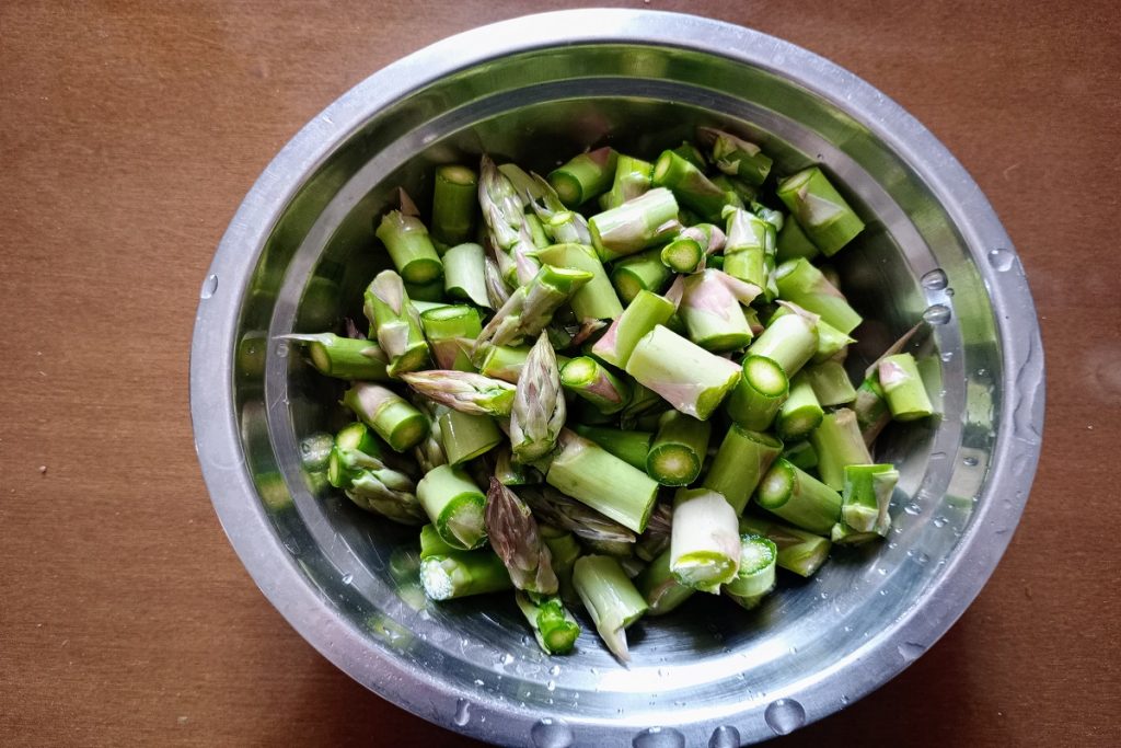 • Lavamos y limpiamos los espárragos eliminando el tallo leñoso.