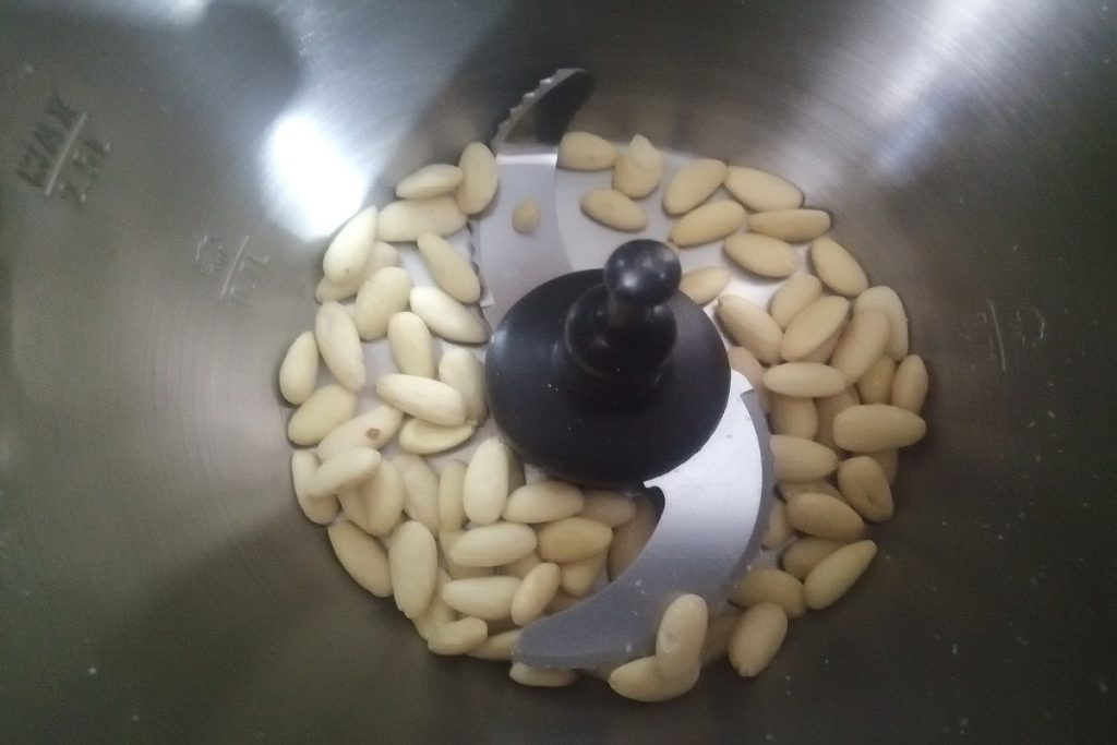 En el vaso de la batidora vertemos las almendras peladas y las trituramos.
