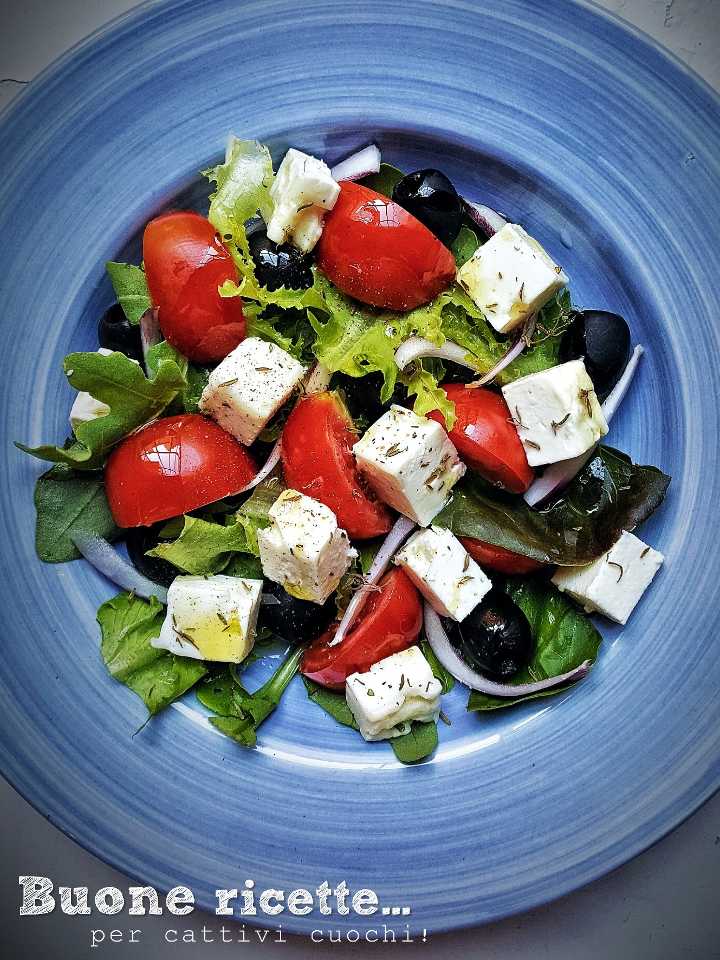 Las materias primas son muy importantes y determinan el sabor y el éxito de tu ensalada griega. Te recomiendo elegir tomates de tamaño medio pequeños con un sabor marcado y definido como, por ejemplo, los camone sardos; si prefieres un sabor más dulce, puedes optar por los tomates cherry.