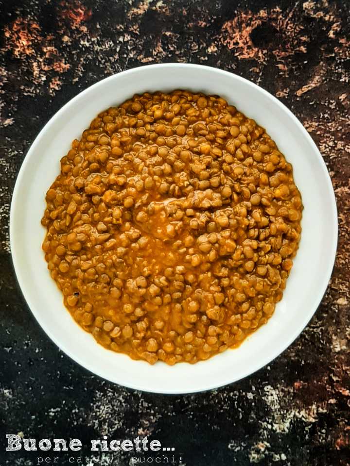 En esta receta, la cantidad de agua es muy importante porque si pones poca, las lentejas podrían quemarse durante la cocción, pero si pones mucha, quedarán demasiado líquidas.