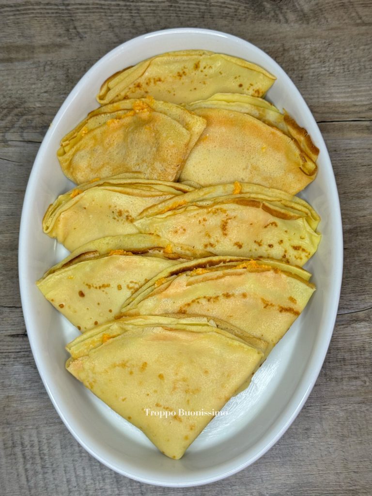Las crepes de calabaza son perfectas también en versión vegetariana, solo con quesos y nueces.