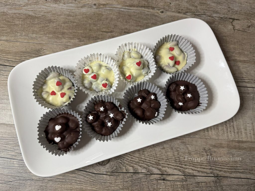 Estos dulces de frutas secas y chocolate son una pequeña obra maestra de simplicidad y bondad, perfectos para el período navideño. Se preparan en pocos minutos, pero el resultado es elegante y delicioso, ideal para enriquecer la mesa de las fiestas o para ser empaquetados y regalados a quienes queremos. Cada bocado cuenta una historia de dulzura y compartición, perfectamente alineada con el espíritu de la Navidad. Prepararlos me permitió honrar el recuerdo de la señora Rossana y continuar con su tradición, esperando que estos dulces también puedan convertirse en un pequeño ritual festivo para ustedes.