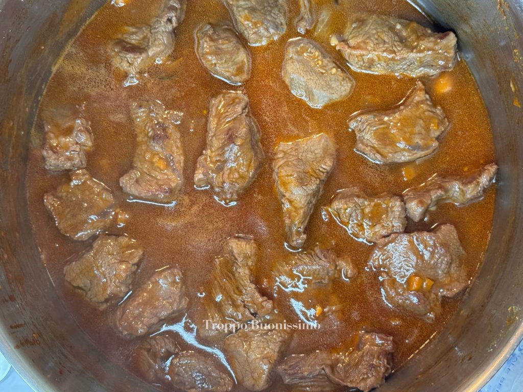 Deja que termine de cocer hasta que las patatas estén suaves y la carne muy tierna.