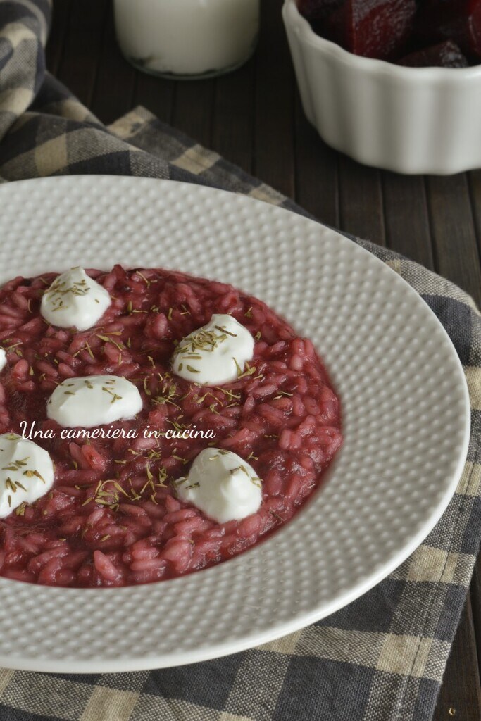 El risotto de remolacha light es un primer plato delicioso, colorido y ligero. Una receta revisada en versión light, donde en lugar de la clásica combinación de remolacha y gorgonzola, he sustituido el queso con yogur griego sin grasas. La remolacha roja cocida aporta un bonito color rojo-violeta al risotto en contraste con el blanco del yogur. Finalmente, he aromatizado el risotto con tomillo seco, pero también se puede usar fresco.