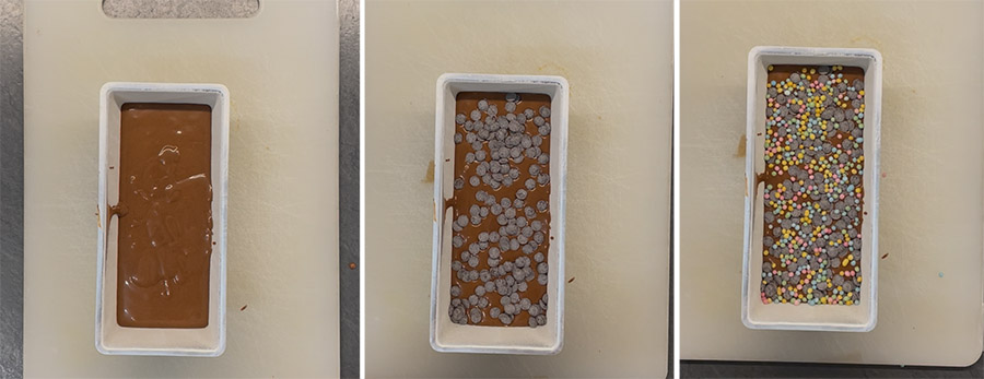 Añade las chispas de chocolate y las bolitas de azúcar.