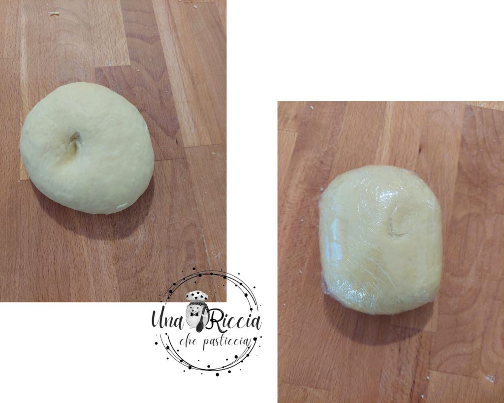 Amasamos todo primero ayudándonos con un tenedor y luego con las manos hasta obtener una masa lisa y homogénea, después la envolvemos en film transparente y la dejamos reposar durante media hora.