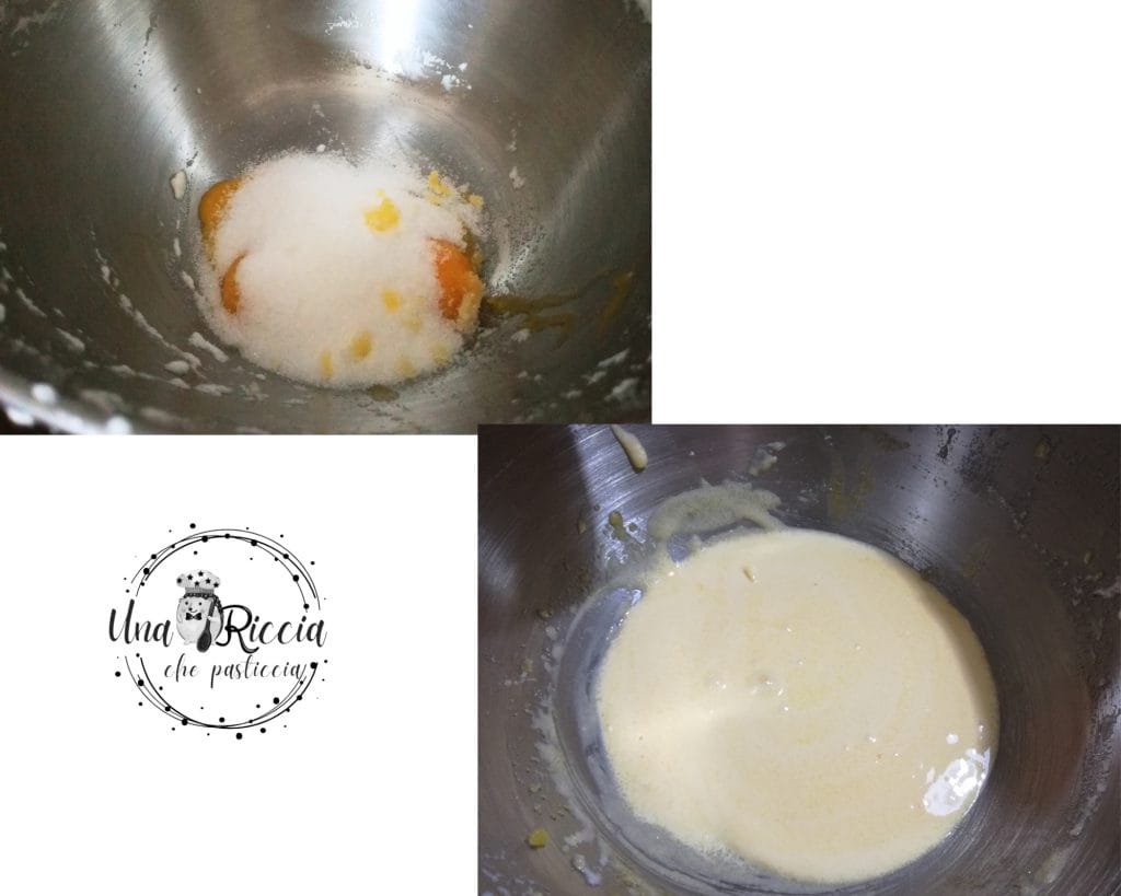 Mientras las claras montan nos ocupamos del resto de la masa. En un bol ponemos las yemas con el azúcar y mezclamos con una batidora eléctrica hasta que se vuelvan claras y espumosas.