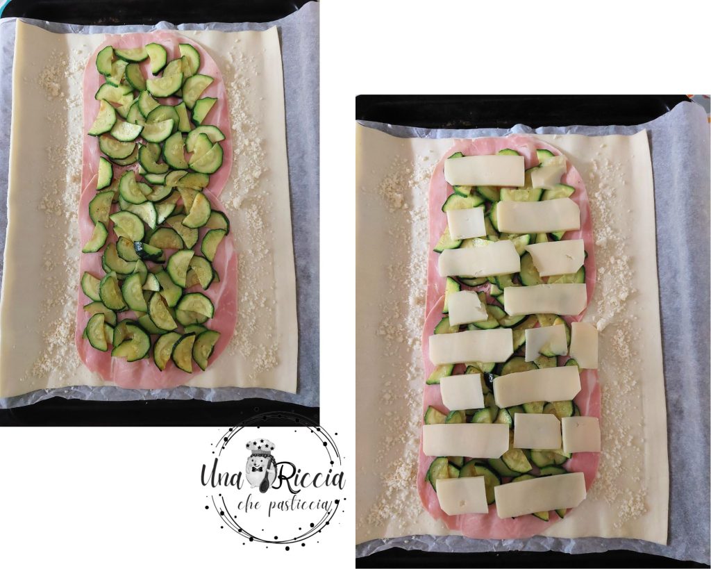 Horneamos en horno ya caliente a una temperatura de 190 grados durante 25/30 minutos pero recuerda que cada horno es diferente así que asegúrate de que esté bien dorado por encima y seco por debajo. Sacamos del horno y dejamos templar, mientras tanto toma una foto de tu hojaldre rústico con jamón cocido y calabacines y súbela a las redes sociales etiquetándome (una riccia che pasticcia instagram y facebook) y cuéntame qué semillas elegiste poner encima.