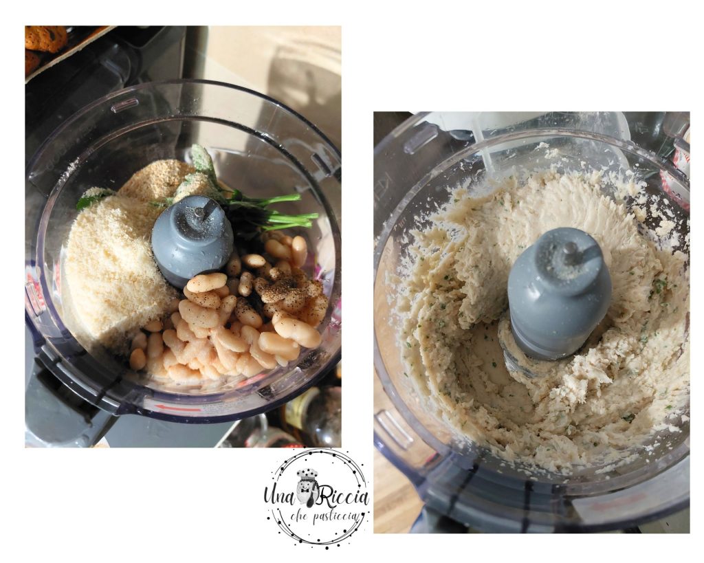 Al menos una vez a la semana preparo albóndigas de legumbres o hamburguesas con garbanzos, alubias o lentejas, a mis niños les encantan. Suelo triturar junto con las legumbres también la verdura, esta vez, sin embargo, he hecho mini hamburguesas hechas solo de alubias cannellini y debo decir que están realmente muy buenas. Yo las he acompañado con una mayonesa de coliflor y una salsita de tomate simple.