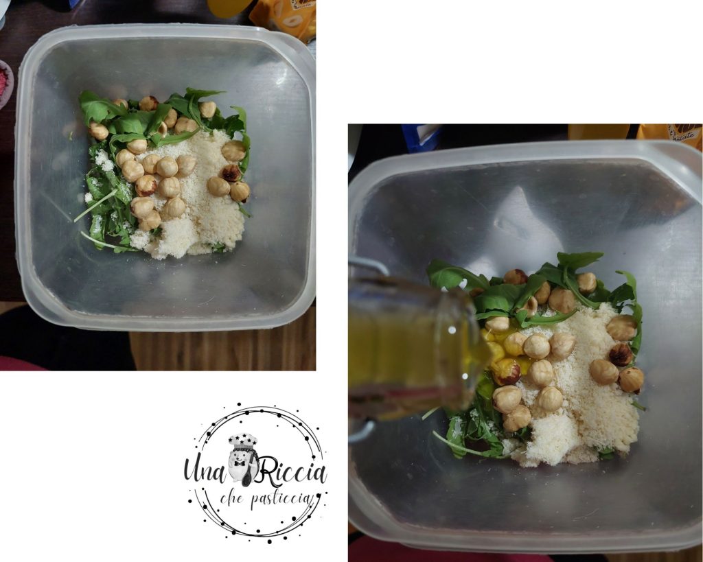El pesto de rúcula y avellanas está listo para ser utilizado o puedes ponerlo en pequeños recipientes y congelarlos. Mientras esperas que la pasta termine de cocinarse, toma una foto de tu pesto y publícala en las redes sociales etiquetándome (una riccia che pasticcia instagram y facebook) y muéstrame tu verde brillante!