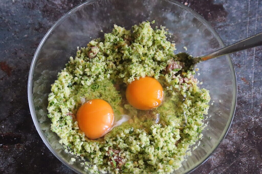 y mezclé bien la masa, si os queda demasiado blanda, añadid más pan rallado.