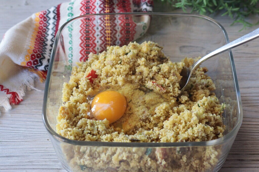 Al cuscús con verduritas añada los huevos