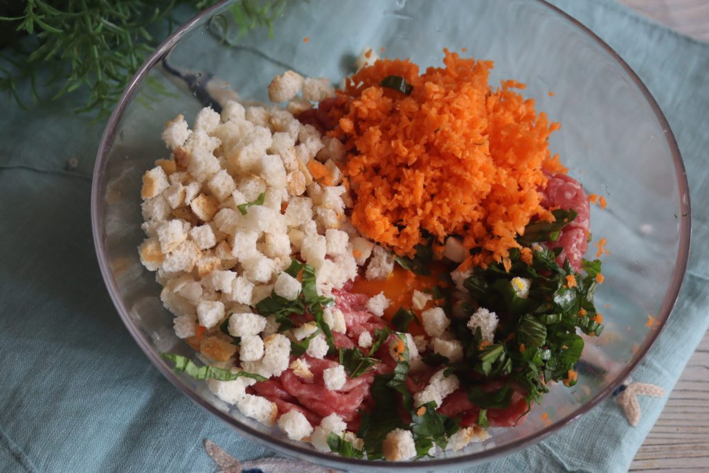En mis albóndigas siempre hay ajo, huevo, pan rallado y una zanahoria triturada finísima.