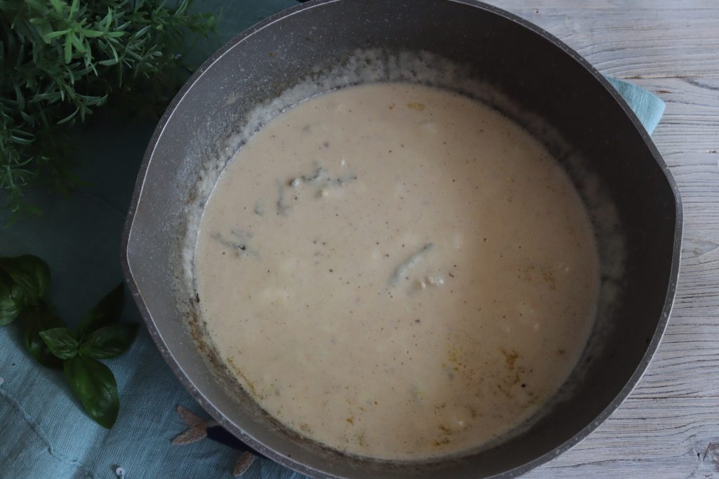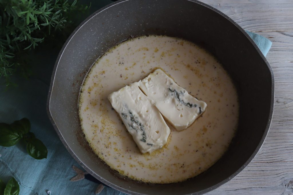 A fuego lento hago derretir el gorgonzola en la leche hasta que se convierta en una crema.