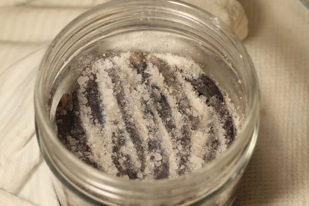 Aquí están listas las anchoas en sal.