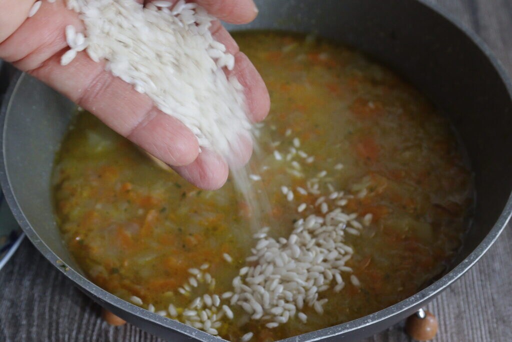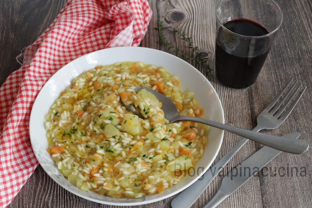 Arroz patatas y zanahorias, qué sopa excepcional, un comfort food para días fríos fríos como estos. Una buena combinación el arroz con las patatas, en la cocina dos ingredientes muy versátiles, si lo piensas bien ambos se pueden cocinar tanto en platos salados como en dulces. Del arroz sabemos que es la comida diaria en Asia, es muy digerible y sabroso, y obviamente particular que no se debe subestimar y muy nutritivo. También lo utilizamos con frecuencia para preparar risottos y otros platos. Del mismo modo, las patatas son un alimento muy versátil y nutritivo para utilizar en la cocina como guarnición y no solo, basta pensar en lo buena que es la pasta con patatas, un plato típico de la cocina napolitana y no solo.