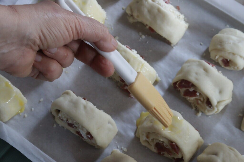 Pincela los bocadillos napolitanos con la yema y la leche mezclados juntos en un cuenco pequeño.