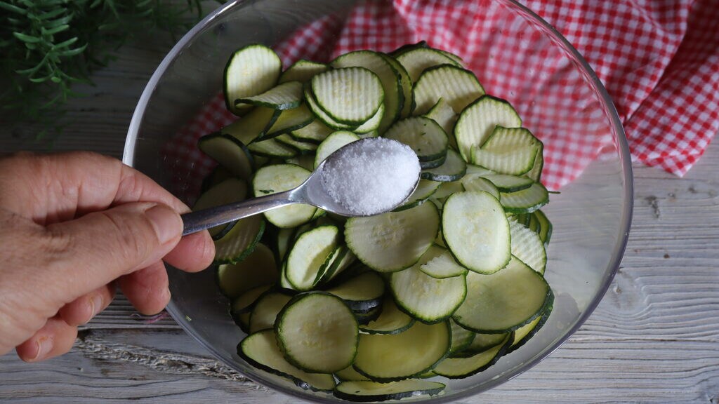 Mezclad bien todos los ingredientes y dejad reposar los calabacines condimentados durante un par de horas antes de servirlos.