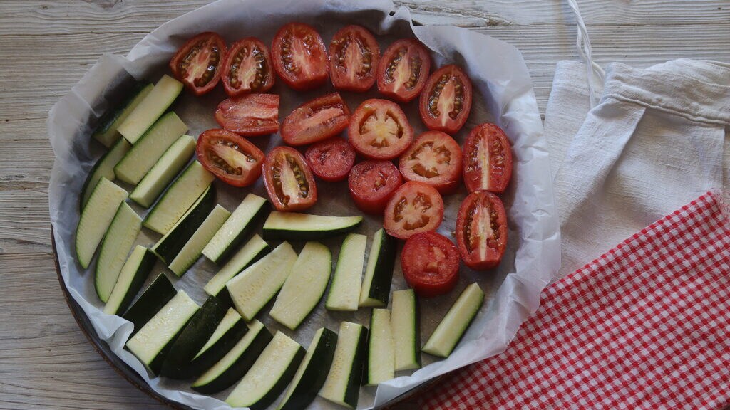 Calabacines y tomatitos gratinados