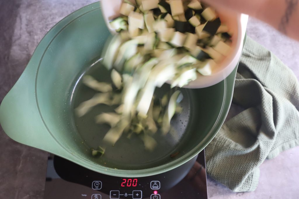 • También retiro los calabacines una vez pasados los cinco minutos.