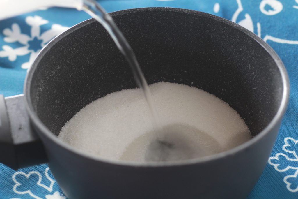 Añadid las cáscaras al agua y al azúcar y removed con delicadeza.