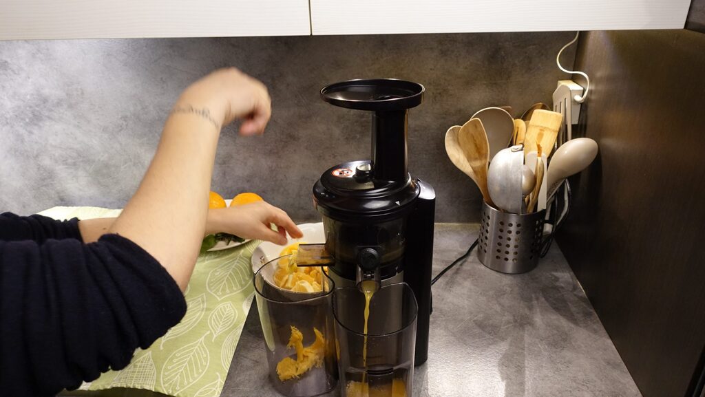 Se necesitarán tres naranjas cortadas en trozos para preparar un buen zumo concentrado con extractor.