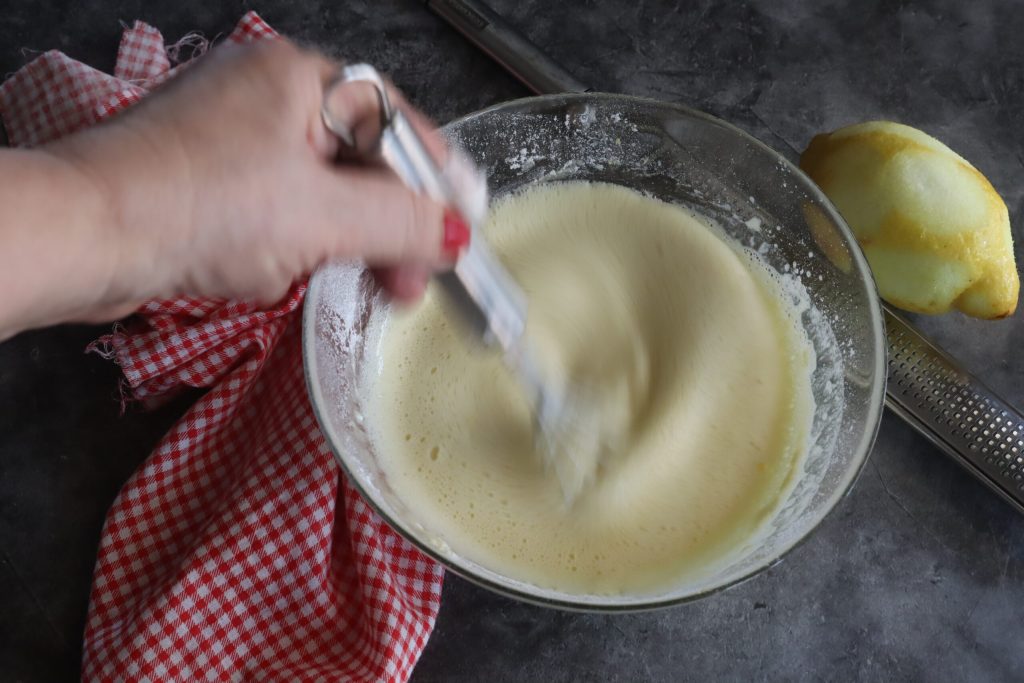 Empezad a batir los huevos con el azúcar.