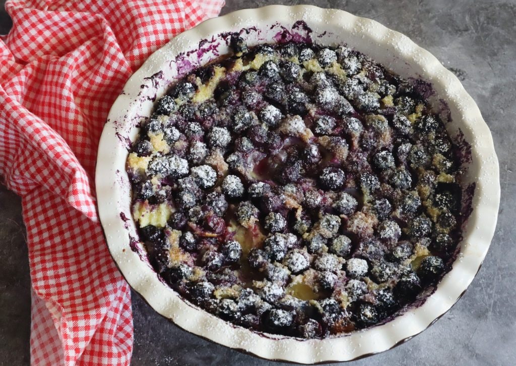 Y aquí está listo el clafoutis con arándanos.