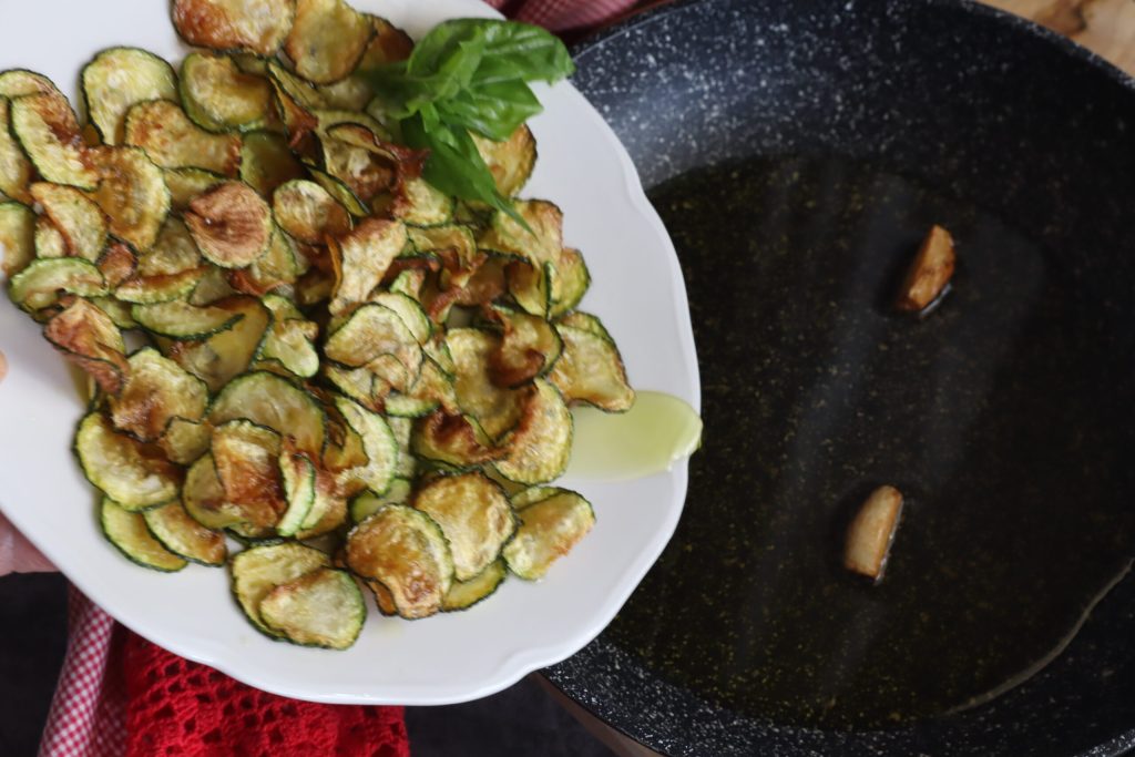Calienta el aceite de cacahuete en la sartén y fríe los calabacines.