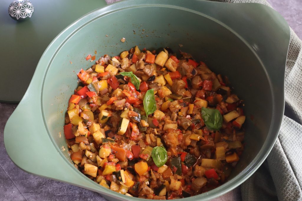 Las verduras están listas, añadid albahaca y pimienta negra molida al gusto.