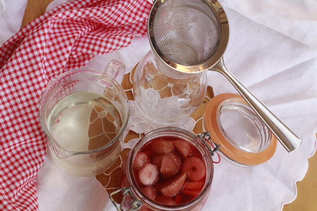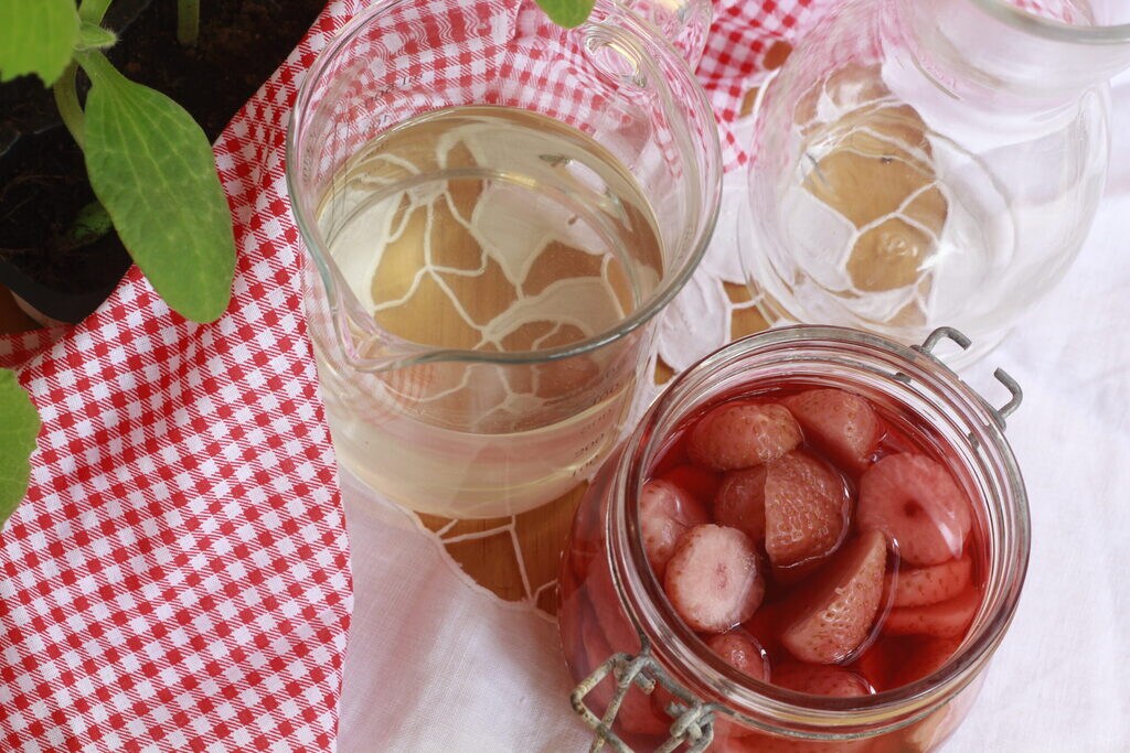 • Coloca las fresas en un tarro de cierre hermético junto con el alcohol, cierra y deja en infusión a reposar durante diez días.