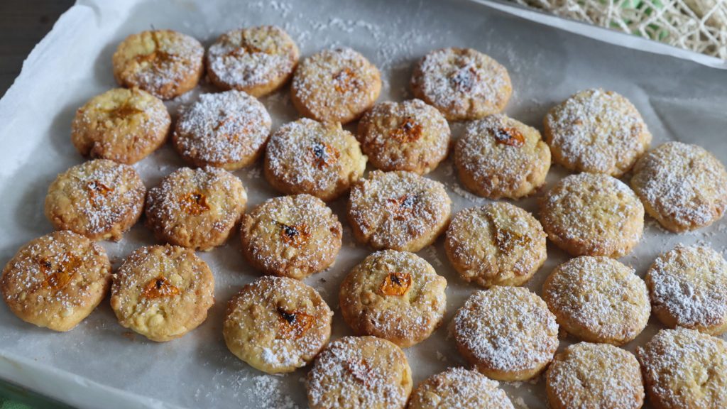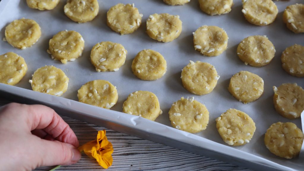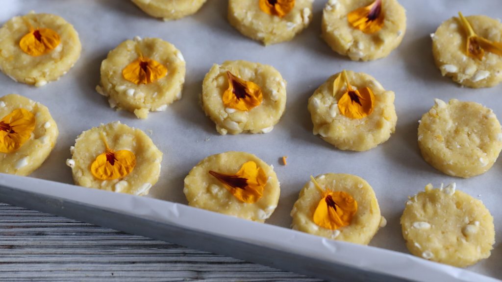 Y aquí están listas las galletas con harina de arroz y pétalos de flores de capuchina.