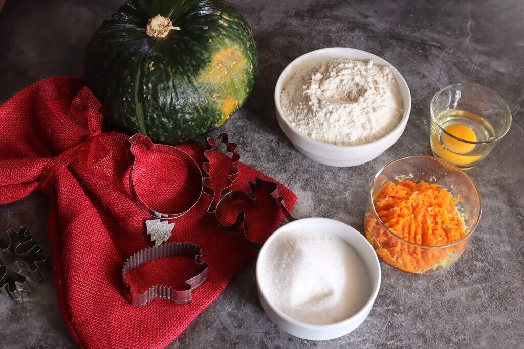 Poned en la amasadora la harina con el azúcar, el pisto y la levadura, iniciad y mezclad todos los polvos. Añadid ahora la calabaza cocida (bastará con 150 g), el huevo y el aceite. Mezclad durante pocos segundos y luego dejad reposar durante 30 minutos en el frigorífico antes de preparar las galletas tiernas de calabaza.