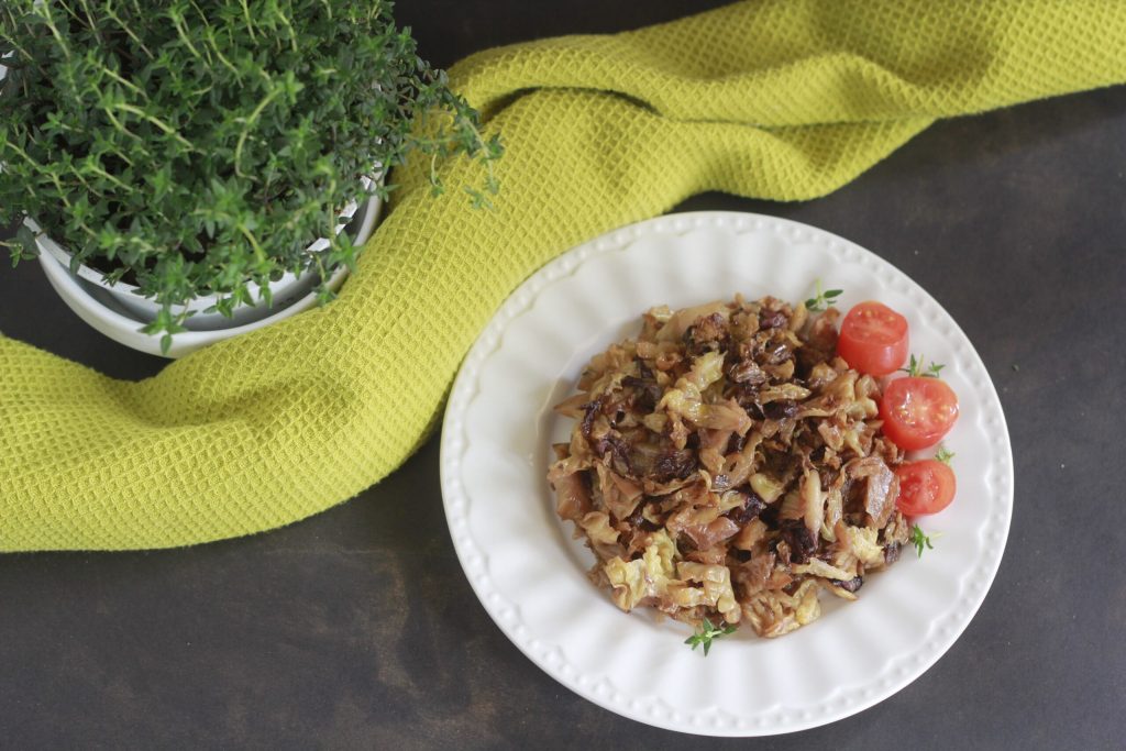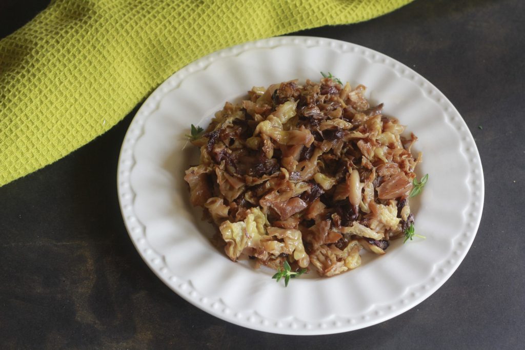 Aquí está lista la guarnición de col rizada y radicchio.