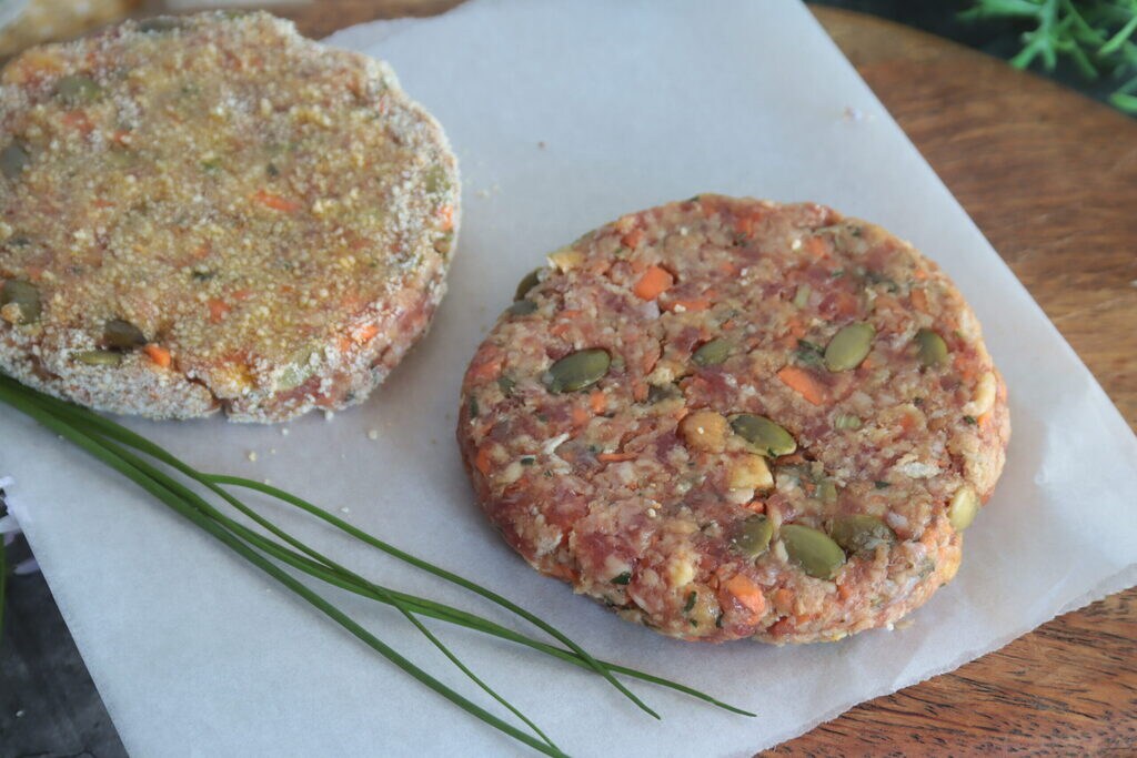 La carne picada se trabaja a mano, entonces después de mezclar bien todos los ingredientes, forma con la prensa adecuada 4 hamburguesas o utiliza un cortador de pasta. Si prefieres, puedes pasar las hamburguesas por pan rallado antes de cocinarlas.