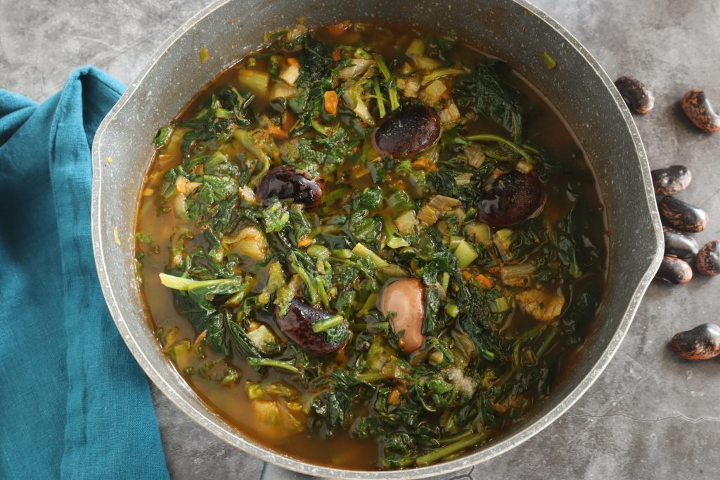 Aquí tenéis las judías Pavone con ribollita listas; yo añadí también los picatostes de pan, pero para un plato sin gluten es mejor no ponerlos.