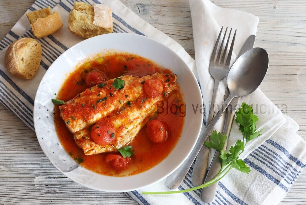 Lampuga a la ‘acqua pazza’ y no me digas que preparo todos los tipos de pescado a la ‘acqua pazza’, esta receta muy versátil se adapta bien a cualquier tipo de pescado. Pero si te parece que tiene cierta semejanza con los nombres capone y caponata siciliana, debes saber que quizás en el fondo haya algo de cierto, los nobles adinerados del siglo XIX consumían la caponata con diversos tipos de pescado y mariscos mientras que el pueblo tenía que conformarse con las berenjenas. La carne de color blanco y el sabor delicado del capone se puede comparar con pescados más finos, sin grasa y con omega 3, vitaminas y minerales, no contienen metales pesados como el mercurio y se pesca solo unos pocos meses al año, 2 o 3 como máximo, y la temporada perfecta es sin duda el otoño.