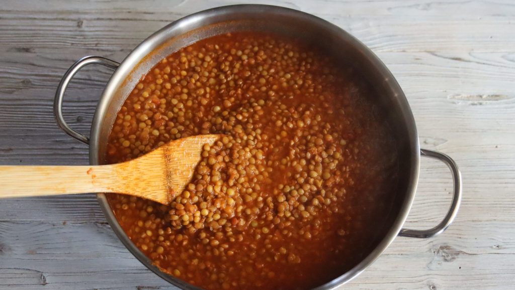 Con 20 minutos las lentejas se cocinan y mientras tanto absorben toda el agua.