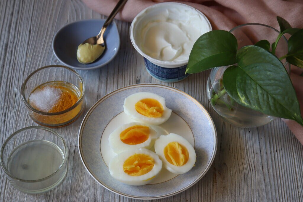 Ingredientes para preparar la mayonesa con huevos cocidos