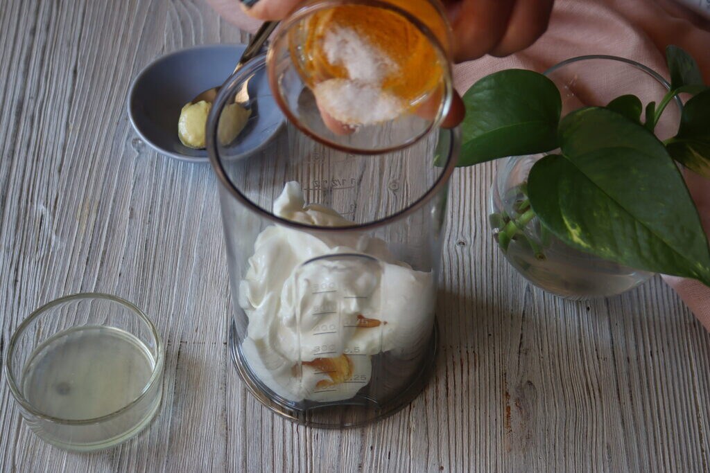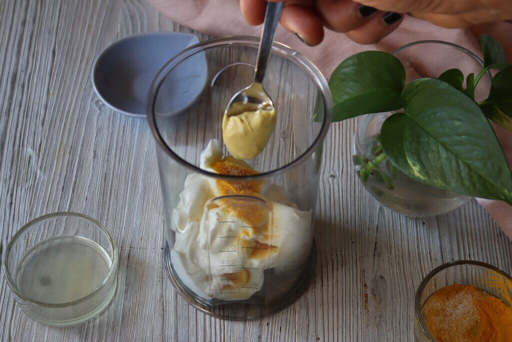 Mayonesa con huevos cocidos, yogur y sin aceite. La mayonesa es la salsa más amada de todas. Todas las salsas son la base de infinitas preparaciones y acompañan muchísimos platos, pueden ser cocidas como la bechamel por ejemplo, o crudas como la mayonesa. La mayonesa y todas las salsas que derivan de ella forman parte de las emulsionadas crudas. Hoy, sin embargo, he decidido preparar una falsa mayonesa utilizando huevos cocidos, bastante ligera al no usar aceite sino yogur griego. Digamos que podría ser una buena alternativa a la habitual y deliciosa mayonesa tradicional, especialmente para quienes siguen un régimen alimentario controlado.