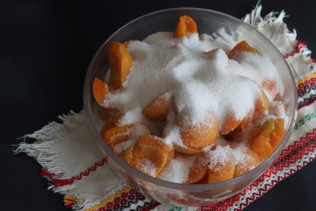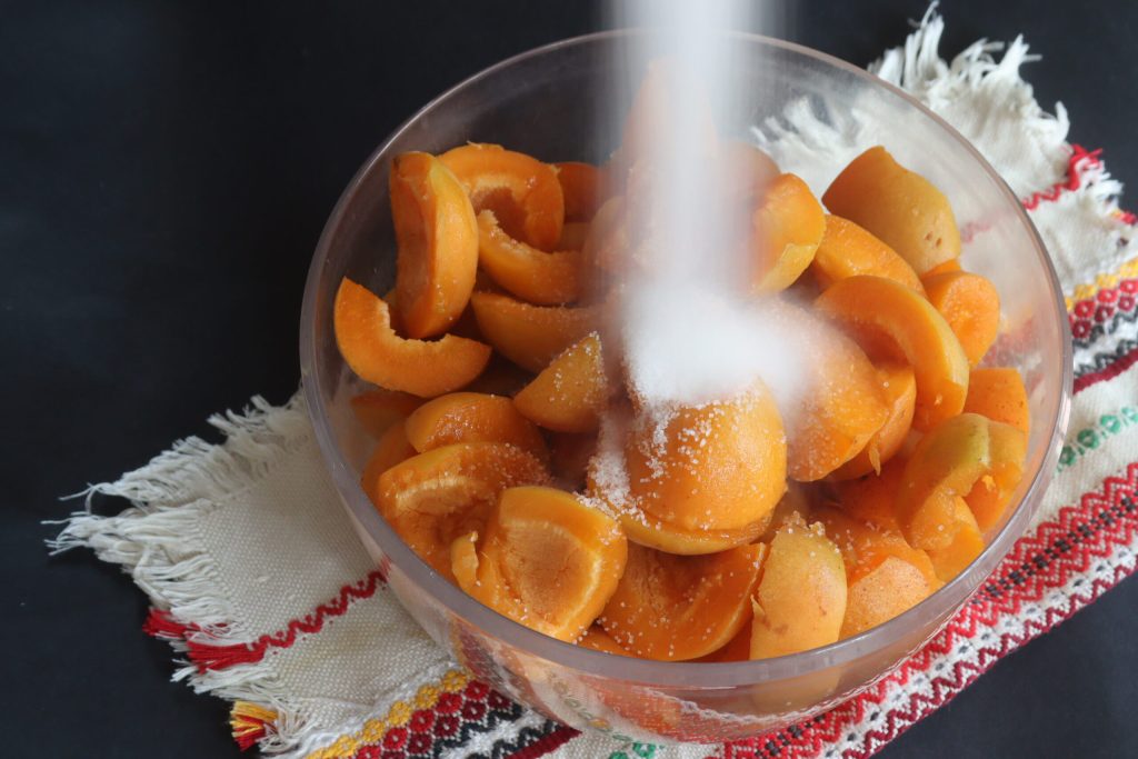 En un tazón, coloco los albaricoques después de quitarles el hueso (obviamente para preparar la mermelada, el peso de los albaricoques deberá ser neto de los huesos).