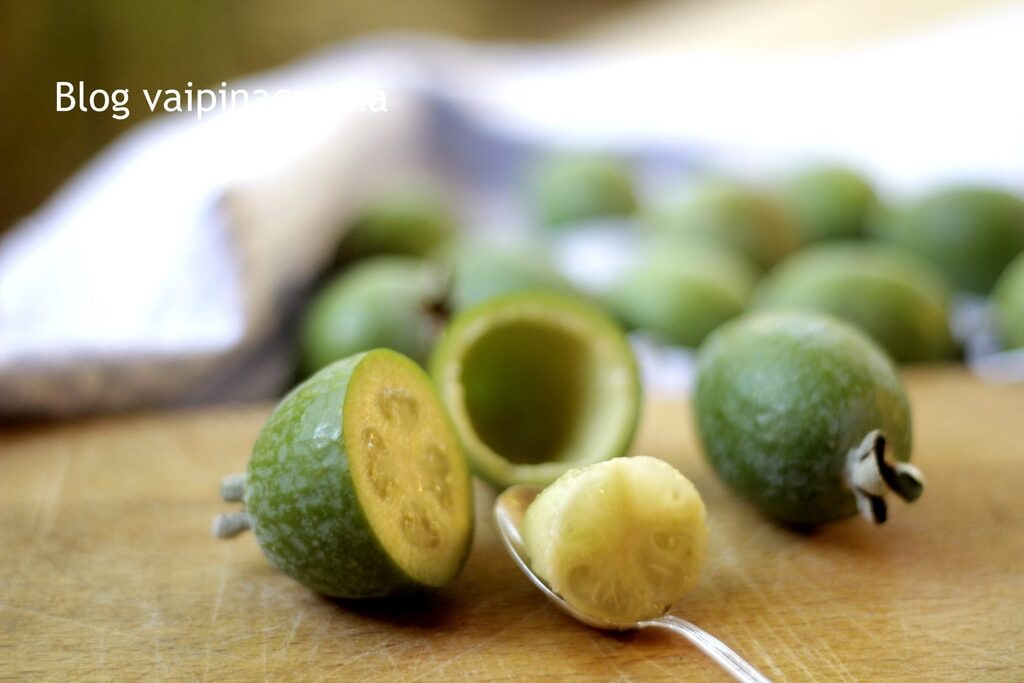 La feijoa es rica en yodo tanto el fruto como las hojas, secas son óptimas para infusiones y tisanas. Pero son las semillas de estos frutos las que tienen importantes propiedades antibacterianas y antioxidantes para el resto de la fruta. También las flores son comestibles, por su sabor dulce y crujiente, ideales para ensaladas. ¡Ahora preparemos la mermelada de feijoa buena y sencilla!