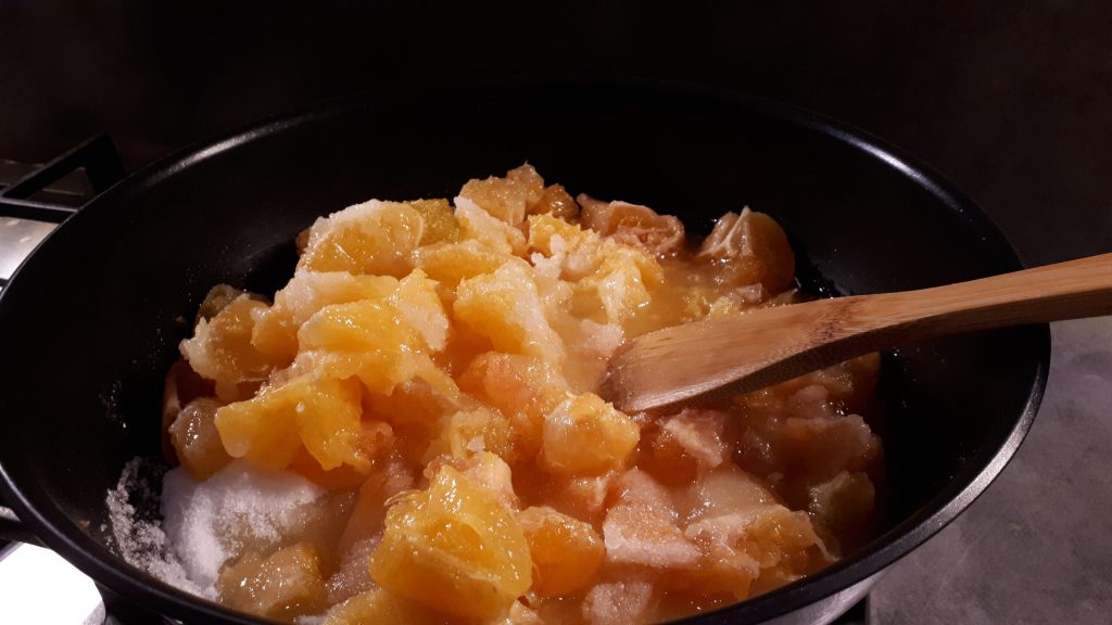De la serie no se tira nada: de la otra mitad de las cáscaras de naranja, preparamos las tiras de naranja confitadas. la receta en mi blog próximamente.