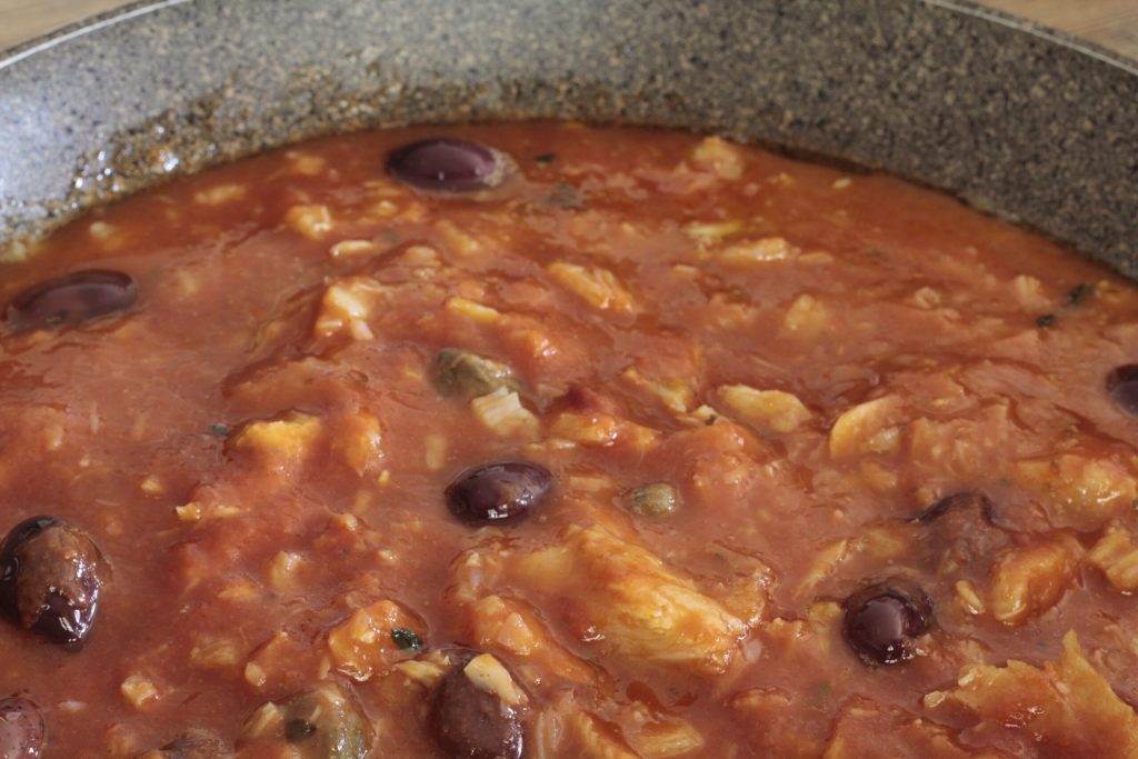 Ajustad la sal si es necesario. La salsa para los paccheri con bacalao está lista.