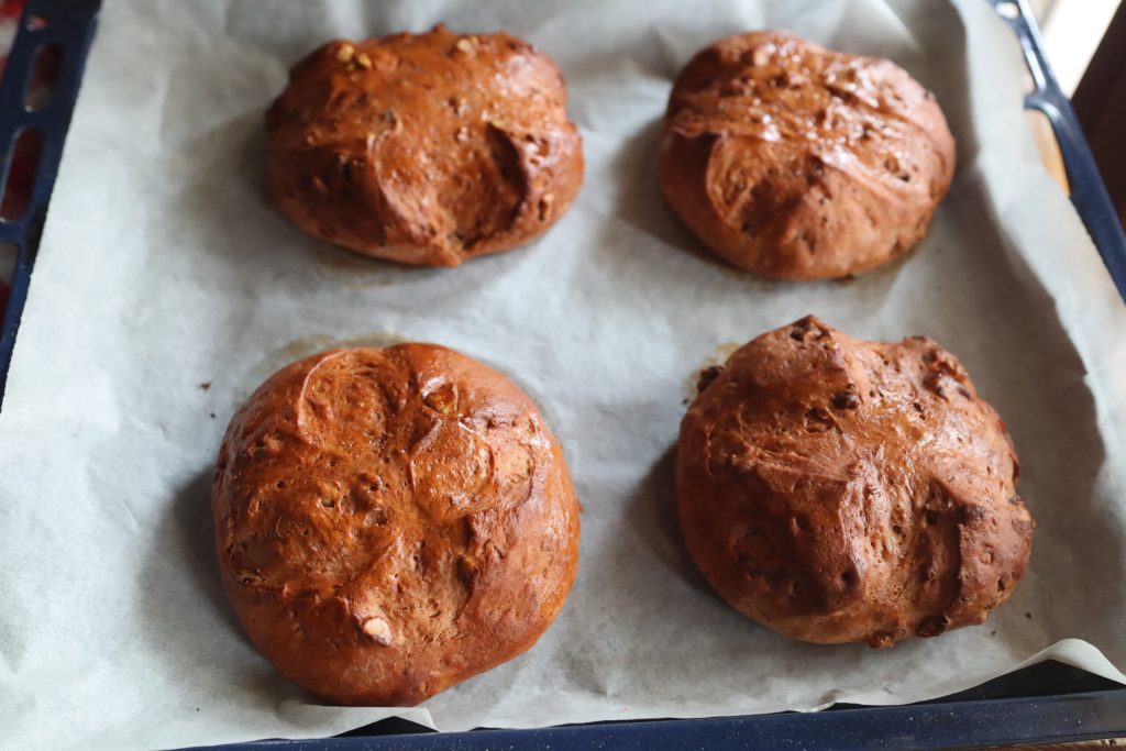 Si se desea, se puede preparar una única hogaza o, como hice yo, 4 panecillos.