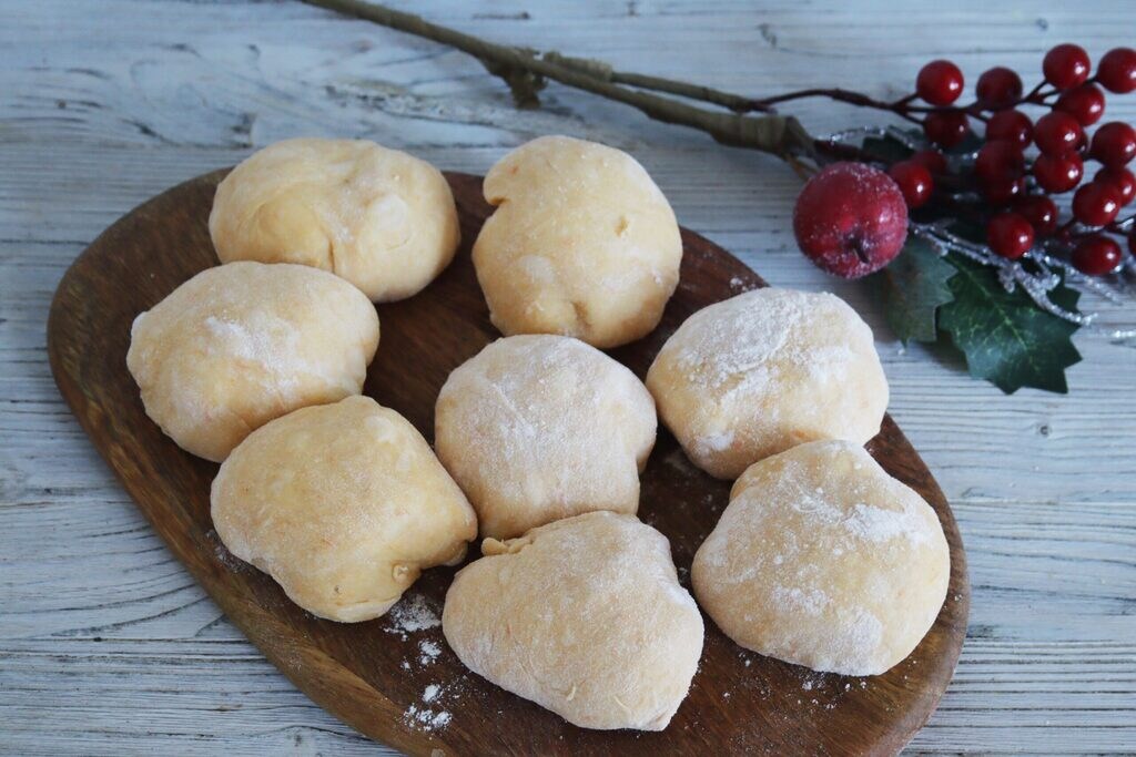 Pasadas 2 horas divido la masa del panbrioche en 8 piezas.