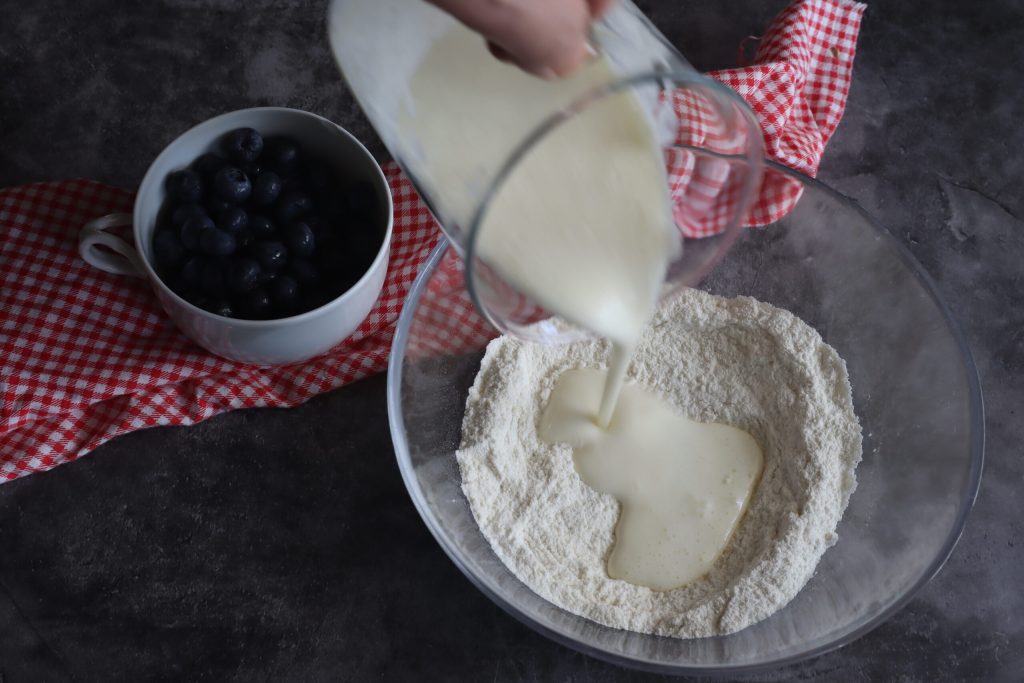 Ingredientes para preparar los pancakes con arándanos
