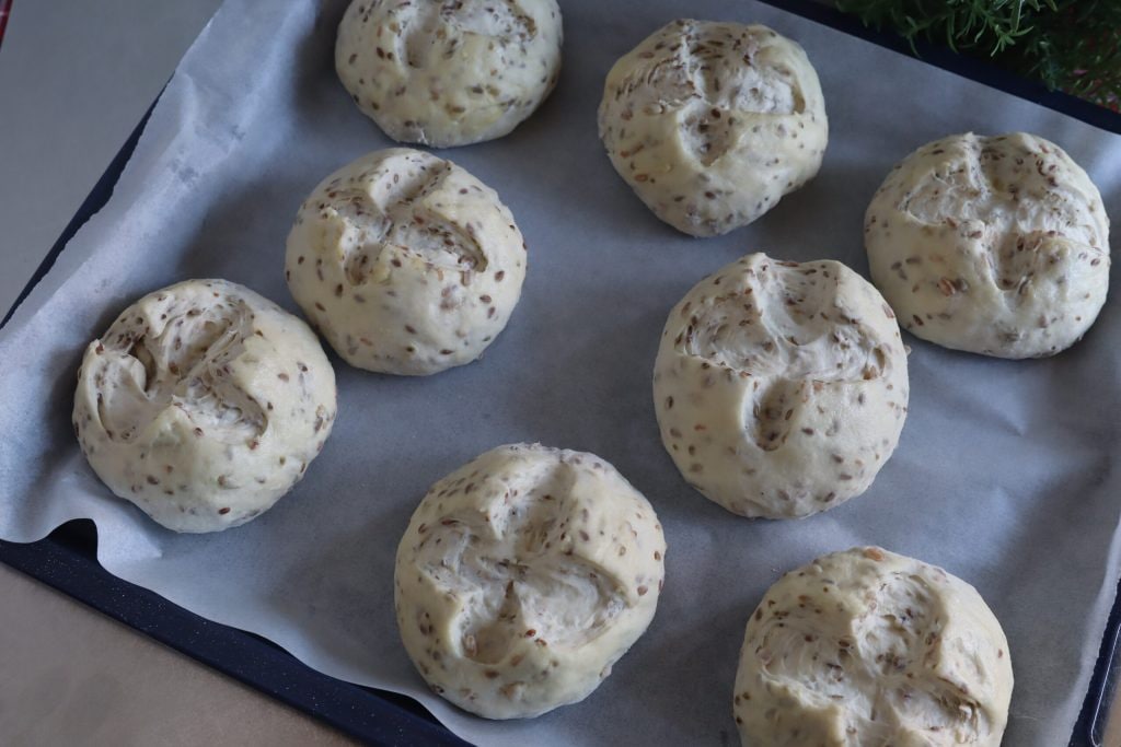 Hermosos y muy suaves mis panecillos de 4 cereales listos para ir al horno.