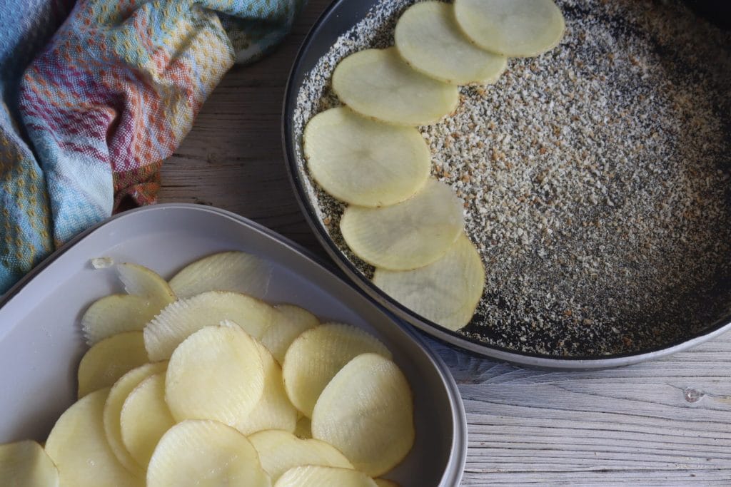 Penúltima capa de rodajas de patatas