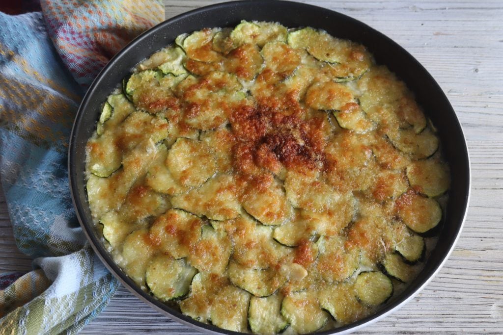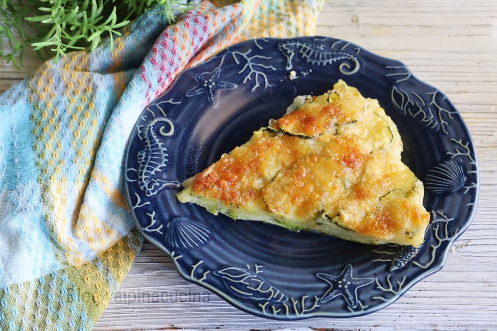 Y aquí está, lista, la parmigiana de calabacines y patatas para un segundo rápido y de temporada.